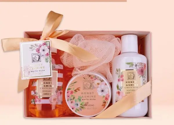 Accentra - Set cadeau de douche pour femmes HONEY JASMINE dans une belle boîte cadeau-Set de 4 pièces gel douche,lotion,beurre pour le corps - cadeau