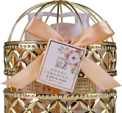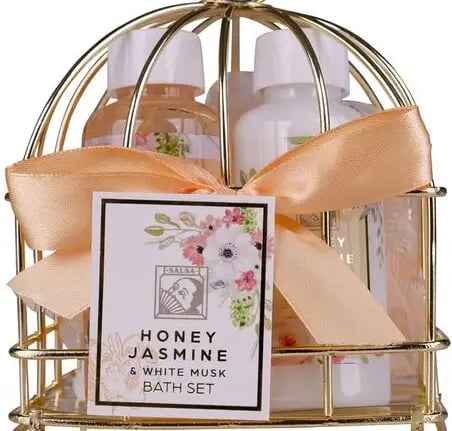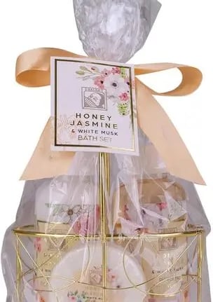 Accentra Set cadeau douche femme HONEY JASMINE Panier métallique Gel douche, lotion - Cadeau anniversaire ou Saint-Valentin